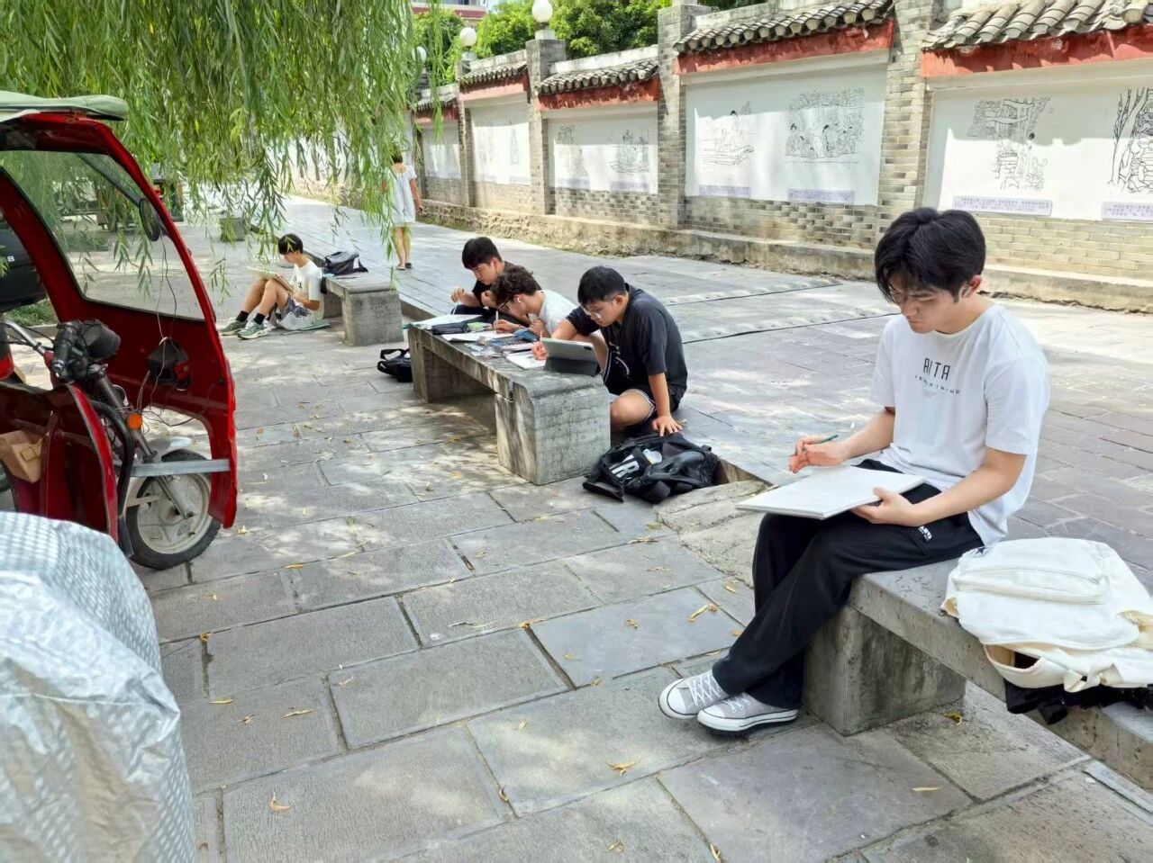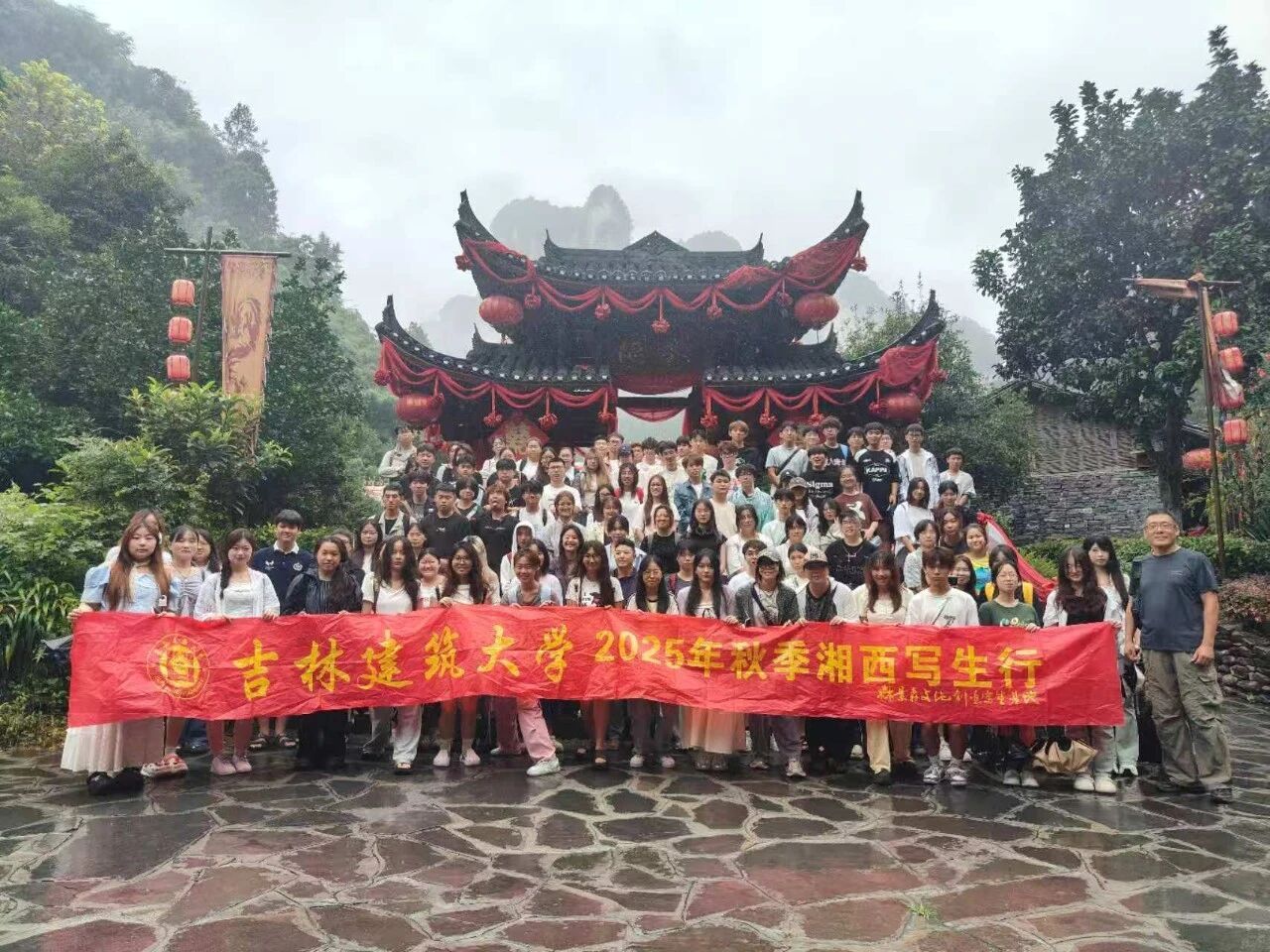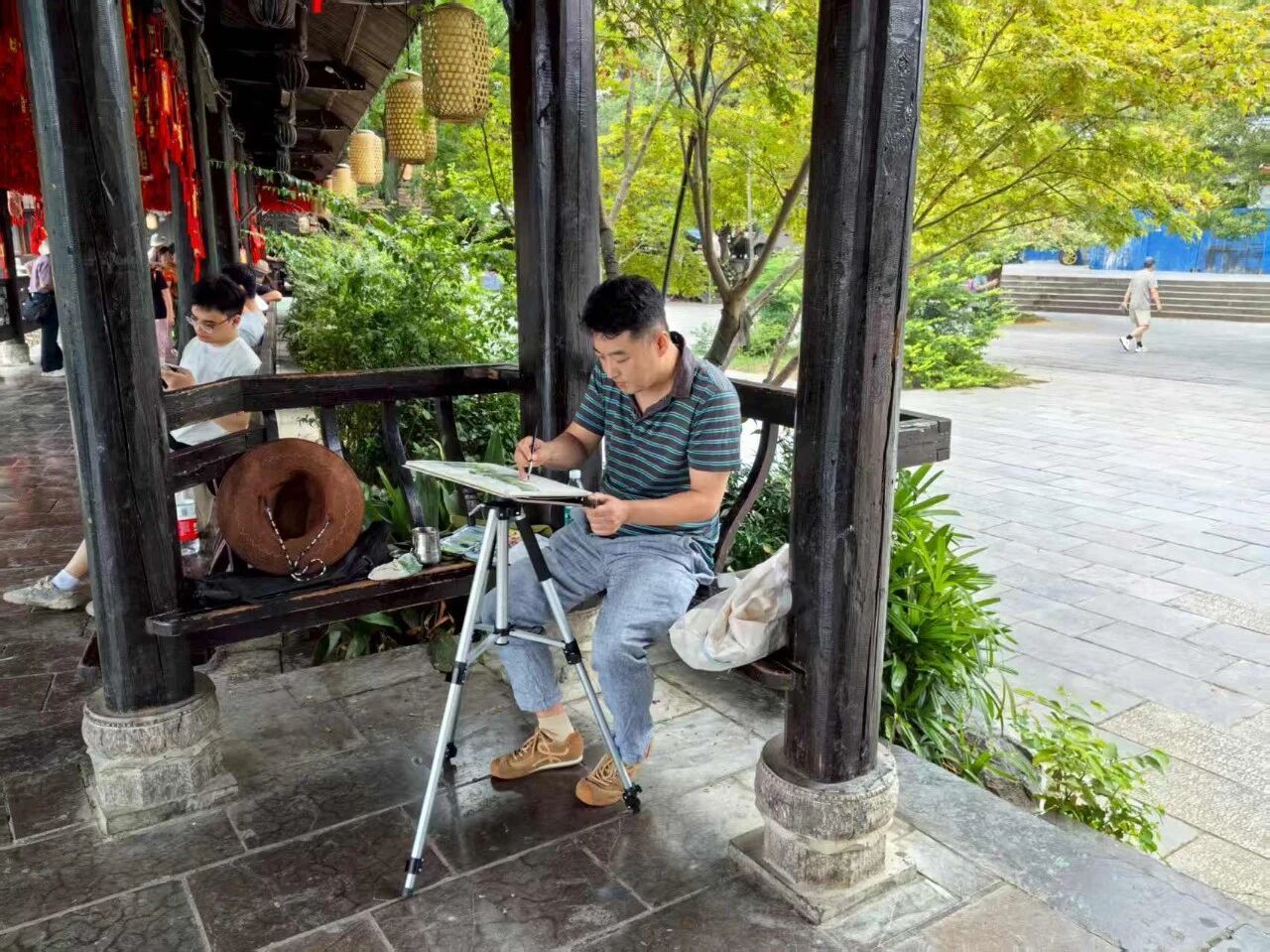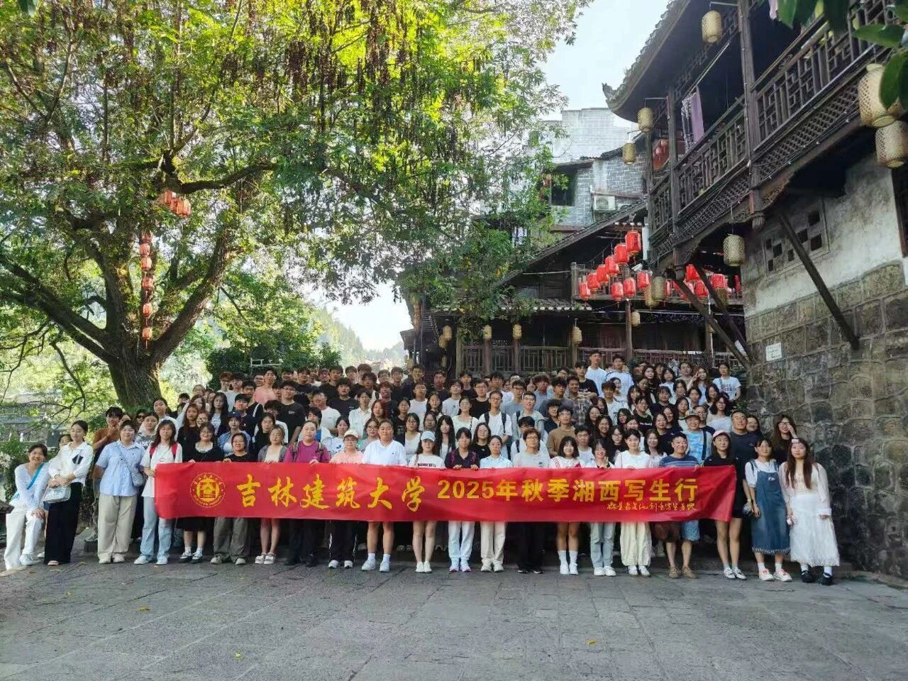 9月1日,写生团队首先抵达湖南长沙,在湖南省博物馆的参观中,同学们系统了解湖南历史文化与民俗特色,为后续写生积累了丰富的文化素材。当晚,团队抵达此次写生首站——湘西“边城”。作为文学大师沈从文笔下《边城》的原型地,这里“一脚踏三省”的独特区位、逶迤的城垣、悠悠的河水与古色古香的吊脚楼,让同学们充满创作期待。在沱江岸边,大家专注捕捉吊脚楼的建筑结构,用画笔还原山城的灵动与雅致。