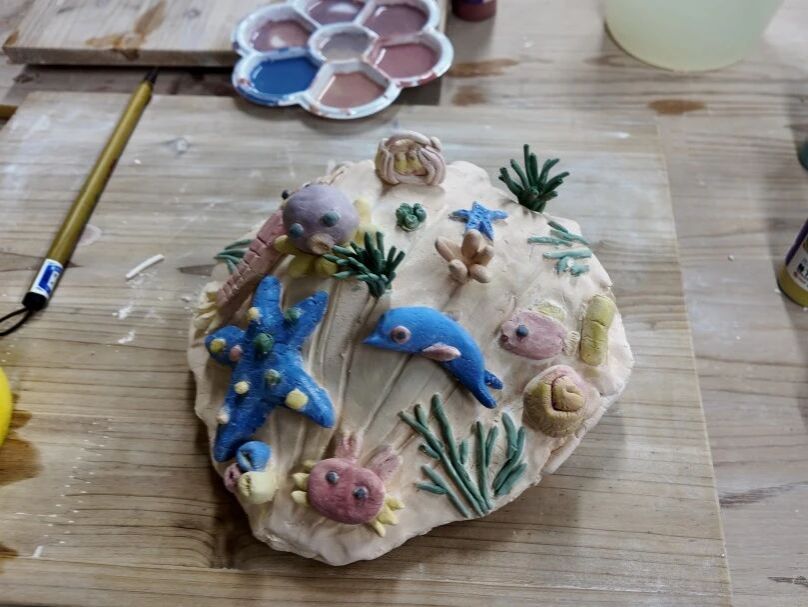 我院于文龙教师全程参与指导,不仅为学员答疑解惑、点亮创意,更引导大家从海洋生物造型延伸至文化内涵的挖掘——让作品在“形似”之外,更传递对海洋生态的敬畏与守护,赋予陶艺创作更深层的精神力量。