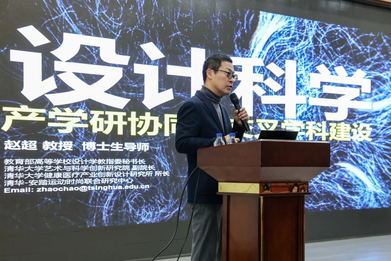 讲座中,赵超教授从全球化与人工智能发展的宏观背景出发,系统阐述了当代设计在推动创新与社会可持续发展中的重要作用。他指出,随着人工智能与数智技术不断融入设计实践,设计正逐渐突破传统专业边界,成为连接技术、文化与社会需求的重要桥梁。
